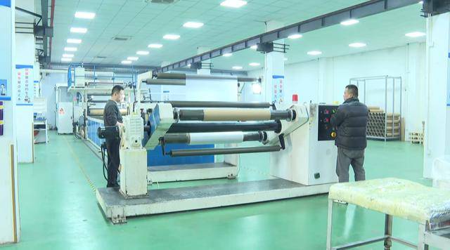 位于潼阳镇的江苏祯臻新材料有限公司生产车间内,同样忙碌。机器持续运转,技术人员正专注调试新型分条机,通过精准调控张力与纠偏系统,将宽幅薄膜分切成用于新能源电池、车模制造等领域的特定规格。
